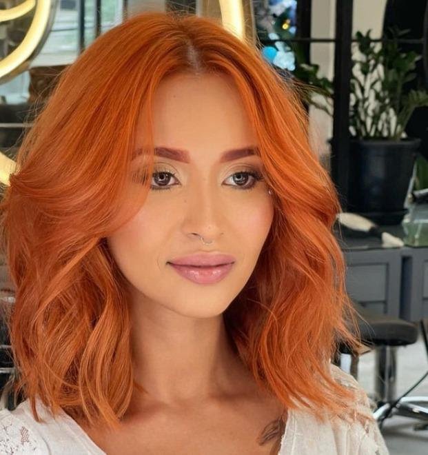 Ousado, o ruivo alaranjado oferece um toque de calor e luminosidade, criando um visual marcante e cheio de personalidade. O Keune Master Talent John Castaño destaca que esta tonalidade é adequada para pessoas com alto contraste no cabelo – ou seja, fios mais claros – e peles com subtom neutro ou quente.