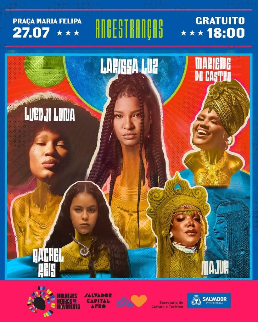 As celebrações do Dia da Mulher Negra Latino-americana e Caribenha em Salvador terão como ponto alto um show com as cantoras Larissa Luz, Rachel Reis, Luedji Luna, Mariene de Castro e Majur, que será realizado na Praça Maria Felipa, no próximo domingo (27), a partir das 18h. A abertura do show ficará por conta do Balé Folclórico da Bahia e Banda Didá.