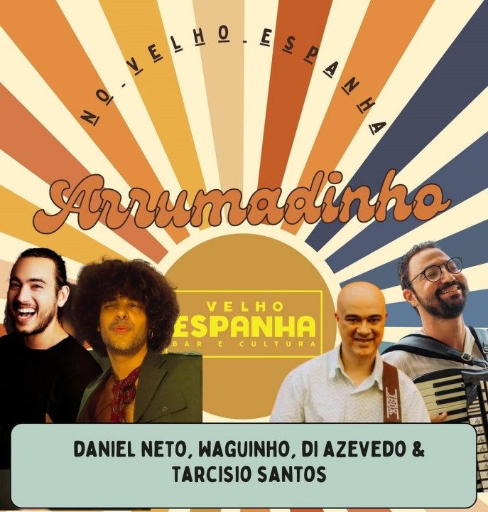 Neste domingo, dia 25 de janeiro, às 17 horas, o Velho Espanha, no Barris, recebe o Arrumadinho, grupo formado por Tarcísio Santos, Daniel Neto, Waguinho & Di Azevedo.