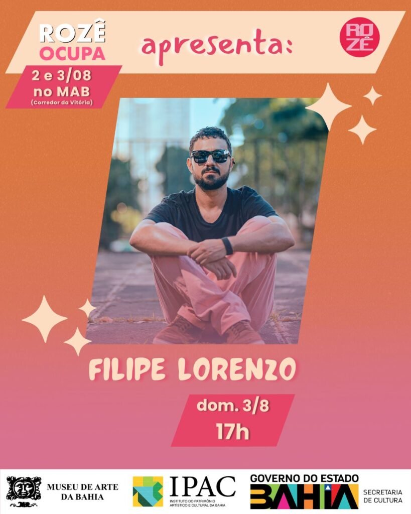 Filipe Lorenzo convida Gabriel Zunga na bateria e relembra sucessos como Mirê Mirê, Ogã Mirim, Africanizar, – canções que revelam a afro baianidade com toques contemporâneos cravados em sua obra.