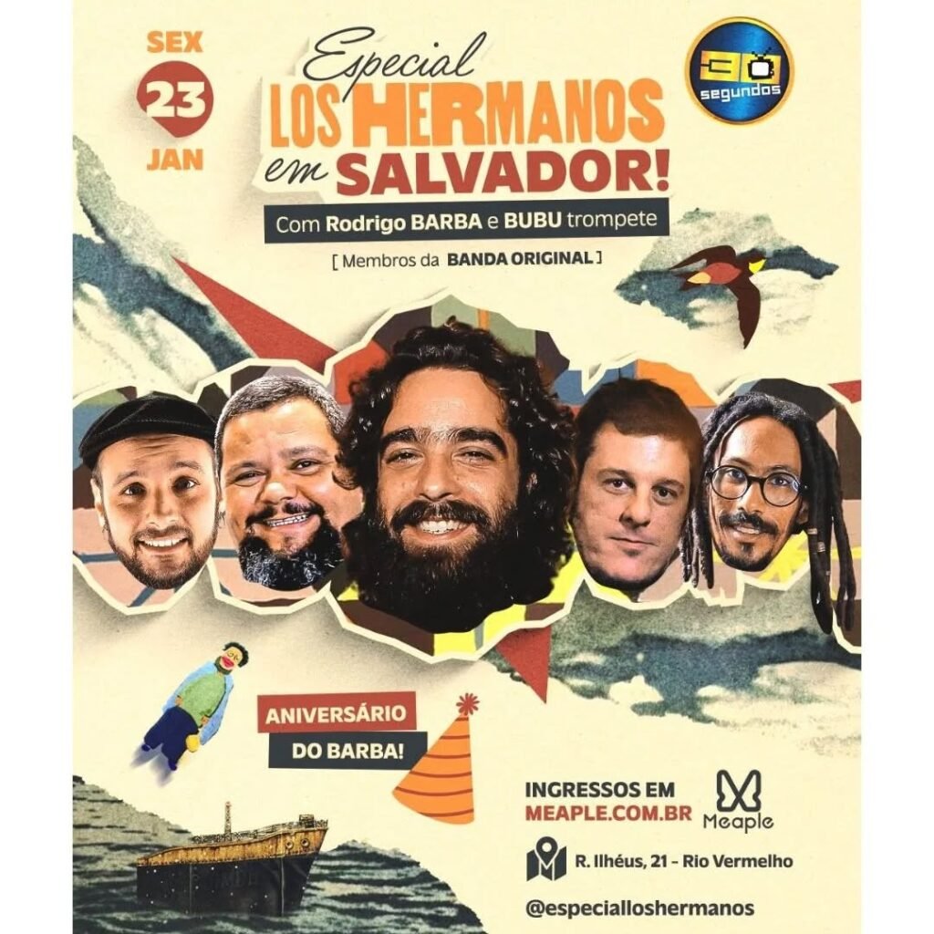 Pela primeira vez em Salvador: Especial Los Hermanos, com Rodrigo Barba, na bateria e Bubu no trompete, ambos integrantes da banda original!