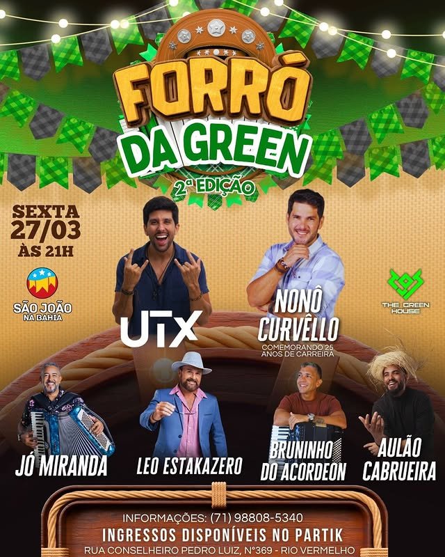 Forró da Green – UTX, Nonô Curvêllo, Jó Miranda e mais