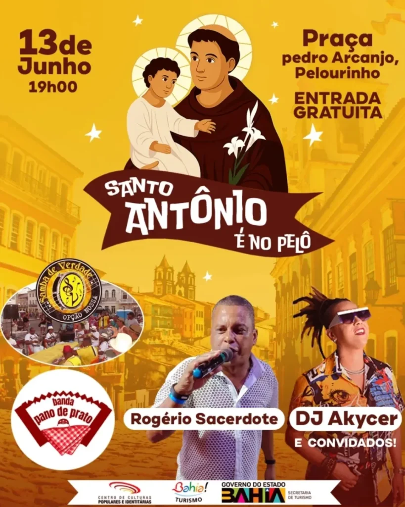 Sexta (13/06), às 19h, Grupo Samba de Verdade, Banda Pano de Prato, Rogério Sacerdote e DJ Akycer se apresentam no Largo Pedro Archanjo, localizado na Rua Gregório de Matos, 10 – Pelourinho.