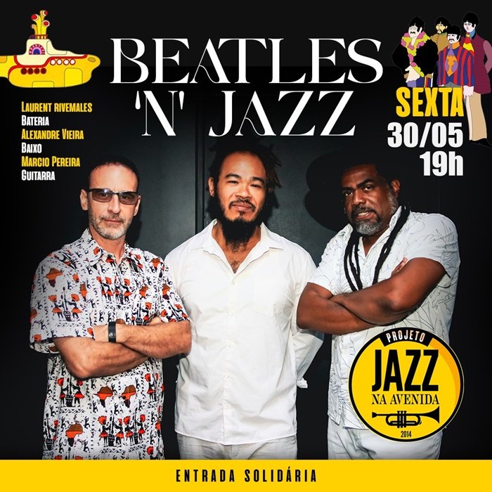 O grupo Beatles ‘N’ Jazz se dedica a fazer releituras de canções da consagrada banda Inglesa que influenciou e influencia gerações ao longo de décadas e que, por sua vez, tiveram grande inspiração no Jazz, linguagem musical que os precedeu e que é até hoje objeto de estudo ao redor do mundo. Sucessos como Yellow Submarine e She Loves You, ganham versões surpreendentes na interpretação dos músicos da Beatles ‘N’ Jazz, mantendo o caráter romântico e por vezes irreverente dos garotos de Liverpool, mas ressignificando as melodias com o suíngue e a espontaneidade do Jazz. Com Alexandre Vieira: Baixo-acustico / Voz, Márcio Pereira: Guitarra e Laurent Rivemales: Bateria. Depois dos show’s curtiremos a tradicional Jam-Session.