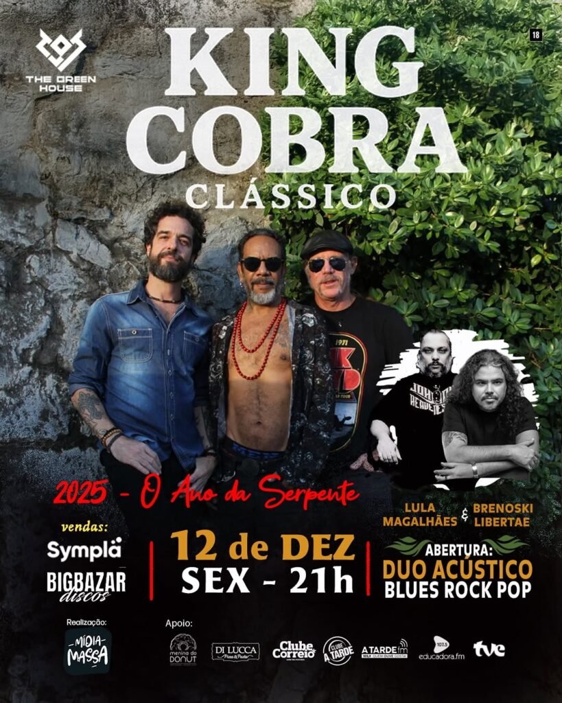 Se não é todo dia em que se comemora 25 anos, também não é todo ano que é regido pela Cobra no Horóscopo Chinês. Imbuídos do espírito de final de ano, em que se repensa a vida e se reforça laços, sejam eles familiares, profissionais ou de amizade, Jorge King, Martin Mendonça e Chris Macchi, da banda King Cobra, concluíram que nada seria mais providencial do que uma confraternização de encerramento deste conturbado Ano da Cobra com o melhor do rock clássico, como desculpa para rever amigos e celebrar a resiliência de todos nós.