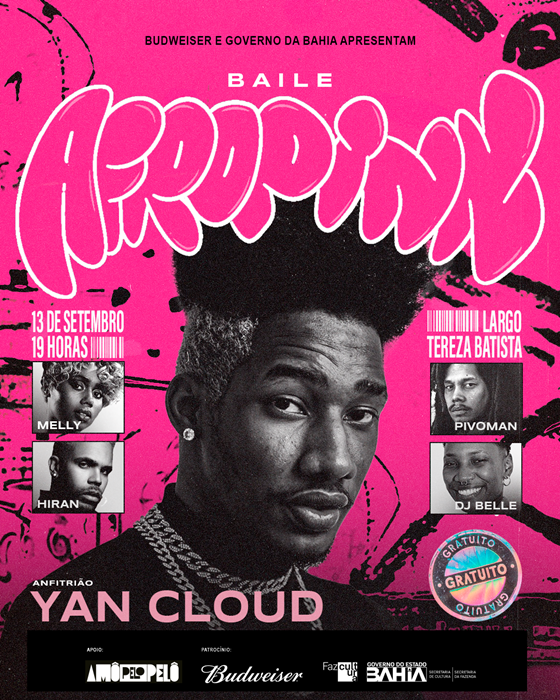 Ao todo serão quatro edições realizadas no Pelourinho e de graça para o público. Na ocasião, além dos DJs residentes que já se apresentavam na abertura em outras edições, teremos show completo de Yan Cloud com banda e muitos convidados. Os convidados para essa edição dessa celebração à música black são os artistas Hiran, Melly, Pivoman e DJ Belle.
