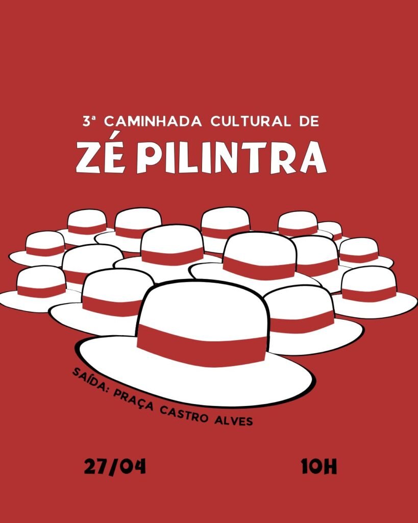 A fé, a cultura popular e a espiritualidade afro-brasileira vão tomar as ruas do Centro de Salvador no próximo domingo, 27 de abril, com a realização da 3ª Caminhada Cultural de Zé Pilintra. O cortejo tem concentração marcada para às 10h, na Praça Castro Alves, e reunirá devotos, terreiros, grupos culturais, artistas, admiradores e simpatizantes da emblemática entidade.