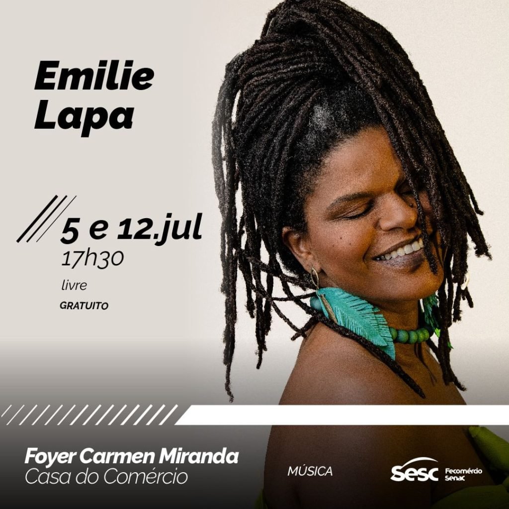A Musicista, Compositora, Arte-Educadora Emillie Lapa se apresenta nos dias 5 e 12 de julho no Foyer Carmen Carmem Miranda do Teatro Casa do Comércio.