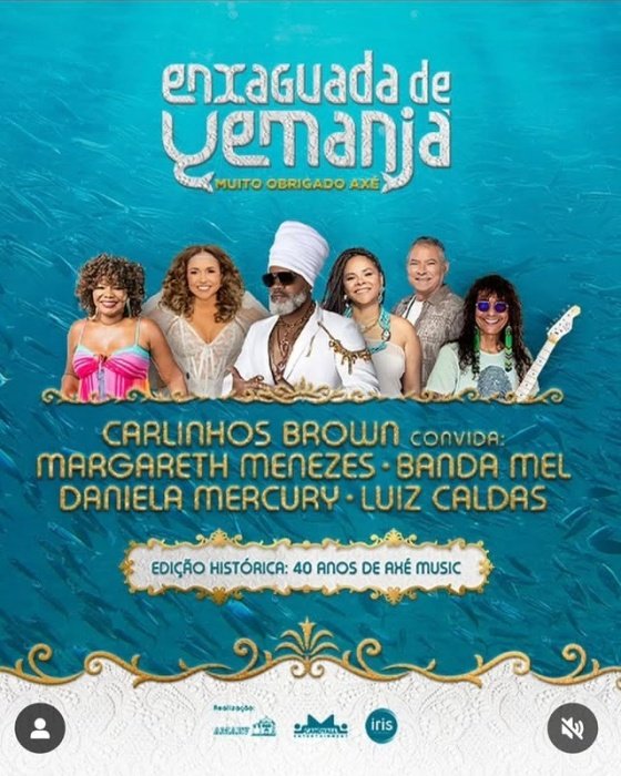 No dia 2 de fevereiro de 2025, Carlinhos Brown e convidados celebram mais uma edição da Enxaguada de Yemanjá na Vila Caramuru, no bairro do Rio Vermelho, o dia da Rainha do Mar. No ano em que se comemora 40 anos do Axé Music, a festa traz como tema ‘Muito Obrigado Axé’, prometendo uma experiência inesquecível de música, alegria e conexão.