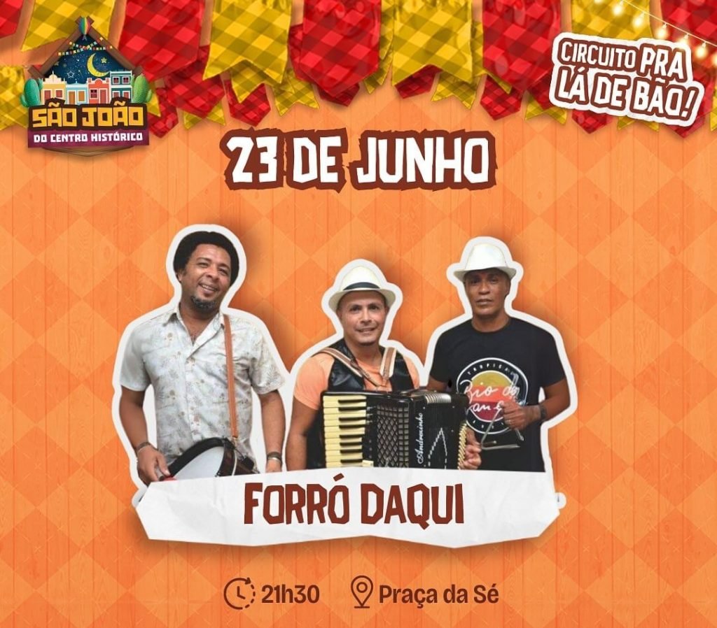 Tem forró pra tudo quanto é lado no São João do Centro Histórico! Até o dia 25 de junho shows diários e gratuitos subirão nos palcos do Largo do Pelourinho (Coreto do Largo), Cruzeiro do São Francisco (Estação de Forró São João), Largo do Santo Antônio Além do Carmo (Coreto Musical Santo Antônio), Praça da Sé (Estação São Pedro), Mercado de São Miguel (Estação São Miguel) e Escadaria do Paço. Ao todo serão 27 shows com artistas da terra, fazendo o melhor forró do mundo.