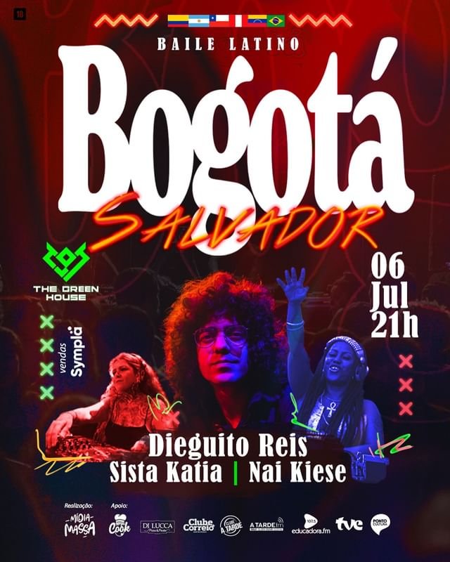 O baile latino BOGOTÁ se tornou uma febre em São Paulo. Idealizada há aproximadamente cinco anos pelos baianos Rafael Kent (in memoriam), Dieguito Reis e o carioca Leonardo Kary, todos então moradores de São Paulo, a festa foi lançada após a pandemia e se tornou uma espécie de manifesto em forma de celebração à América Latina, e sua rica diversidade cultural, que reflete diretamente numa música pulsante e de muita personalidade. Assim são também as noites promovidas pela BOGOTÁ, agora pela primeira vez em Salvador! O encontro “caliente” vai ser na The Green House, sábado dia 6 de julho, a partir das 21h. Ingressos na Sympla.