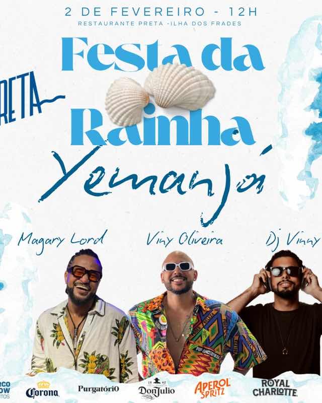 No dia 2 de fevereiro de 2025, o Restaurante Preta convida você para celebrar o Dia de Iemanjá com uma experiência inesquecível na paradisíaca Ilha dos Frades. Muito samba e axé com Magary Lord e Viny Oliveira para animar e embalar a celebração, trazendo o ritmo e a alma da nossa cultura.