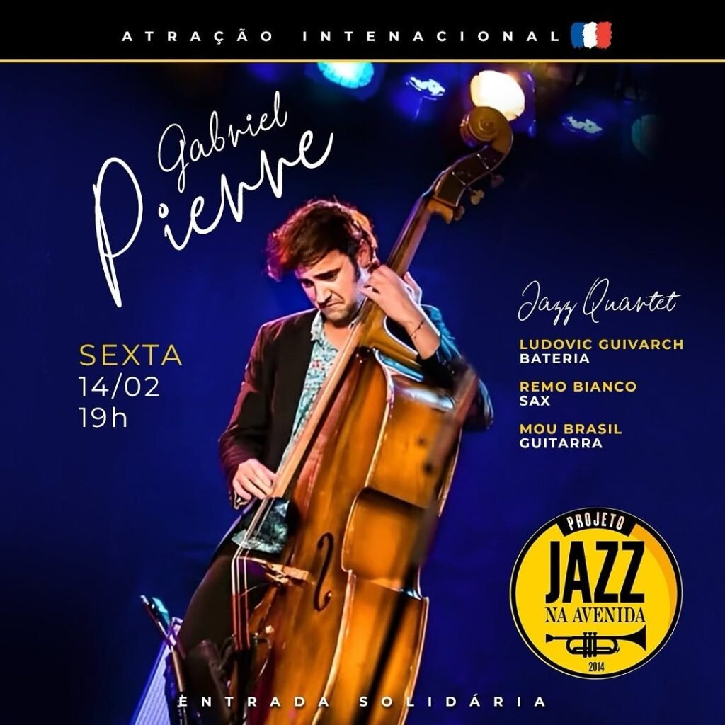Sexta (14/02), às 19h, Gabriel Pierre apresenta seu quarteto de jazz com Ludovic Guivarch (Bateria), Remo Bianco (Sax) e Mou Brasil (Guitarra) na Boca do Rio, entre o Boi Preto e a Caixa Econômica.