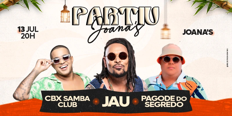 Dia 13/07, sábado tem Jau, CBX Samba Club e Pagode do Segredo no Joana’s Botecom, a partir das 20 horas.