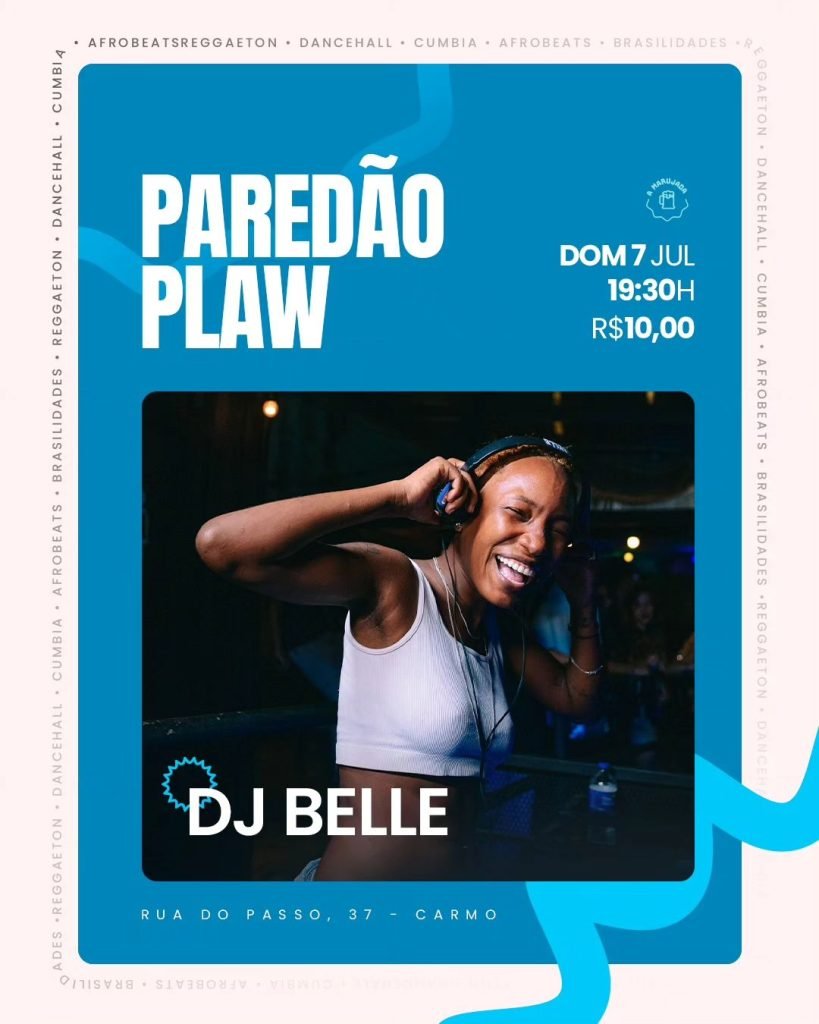 Domingo (07/07), às 19:30h, ocorre o Paredão Plaw comandado por DJ Belle. O evento acontecerá n’A Marujada, localizada na Rua do Passo, 37 – Santo Antônio Além do Carmo.