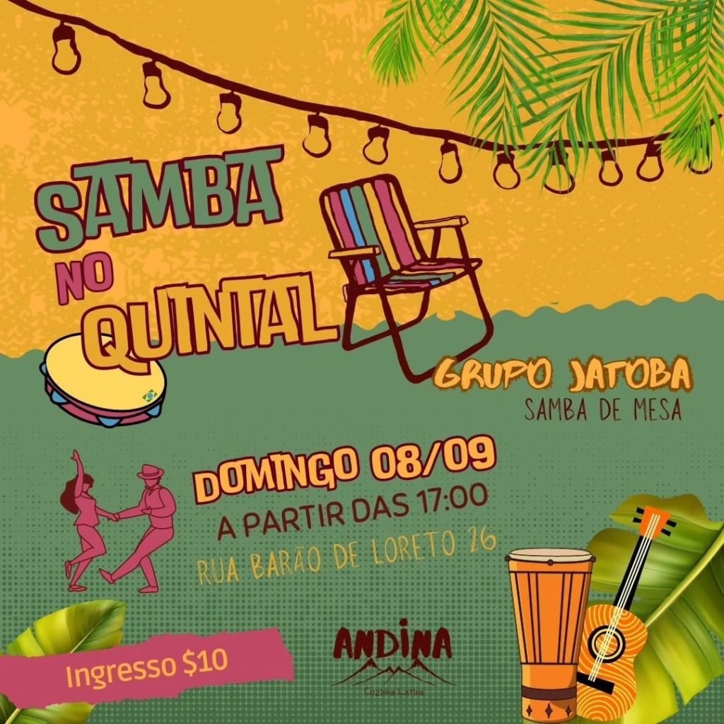 Domingo (08/09), às 17h, ocorre o Samba no Quintal com apresentação do Grupo Jatoba no Andina, localizado na Rua Barão de Loreto 26, Graça.