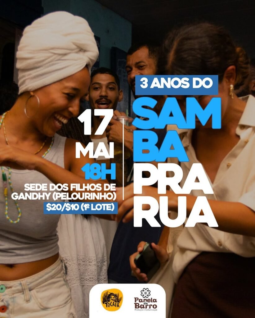 O SAMBA PRA RUA completa 3 anos espalhando no dia 17 de maio, na sede dos Filhos de Gandhy, no coração do Pelourinho.