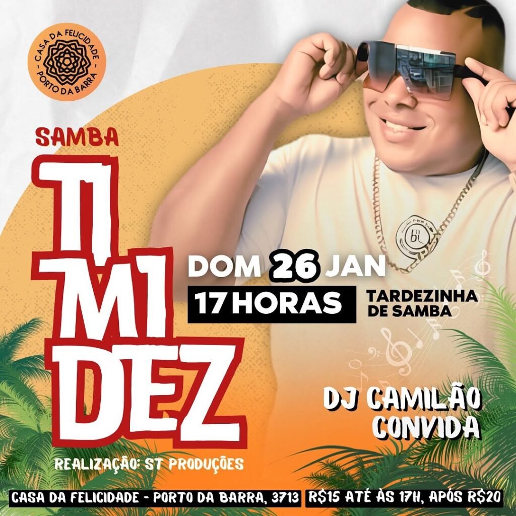 Domingo (26/01), às 17h, Samba Timidez se apresenta na Casa da Felicidade, localizada na Av. Sete de Setembro, 3713 – Barra.