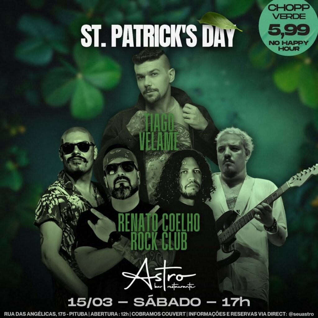Sábado (15/03), às 17h, Tiago Velame e Renato Coelho Rock Club se apresentam Astro Bar e Restaurante, localizado na Rua das angélicas, 175, Pituba.