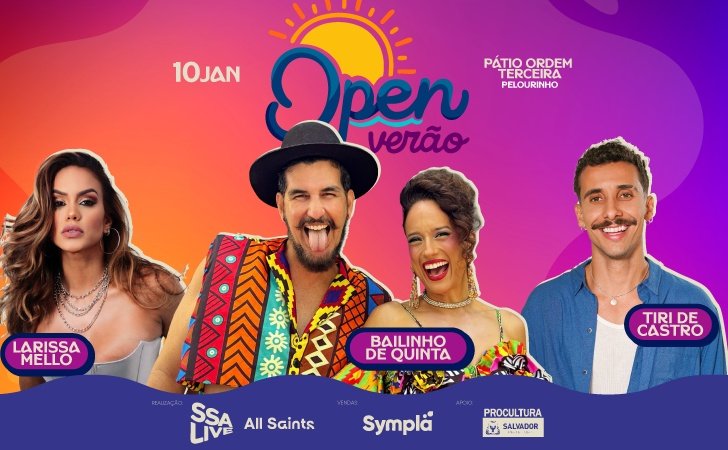 O All Saints traz de volta o Open Verão com shows de Bailinho de Quinta, Tiri de Castro e Larissa Melo, no dia 10 de janeiro no Pátio da Ordem Terceira – Pelourinho.