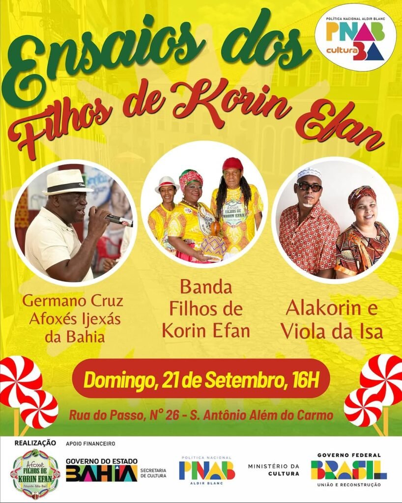 Ensaio do Afoxé Filhos de Korin Efan convida Germano Cruz e Afoxé Ijexás da Bahia e Banda Alacorin e Viola da Isa