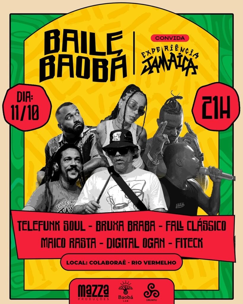 Baile Baobá Convida Experiência Jamaica – Fall Clássico, Maico Rasta, Ogan Digital, DJ Bruxa Braba, MC Fitech e DJ Telefunksoul