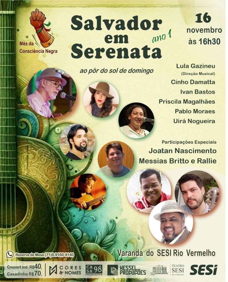 Na tarde de domingo, dia 16 de novembro de 2025, a partir das 16h30, a cidade de Salvador será embalada pelo encantador projeto “Salvador em Serenata”, que acontece ao pôr do sol na charmosa Varanda do SESI Rio Vermelho, integrando a programação do mês da Consciência Negra.