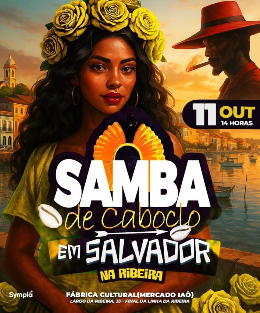 Dia 11 de Outubro, às 14h, no Espaço do Mercado Iaô, o grupo carioca Samba de Caboclo reencontra o povo de Salvador, para pulsar o coração aberto e o corpo em movimento, saudando o grande Guerreiro Ogum, em sua última edição do ano. Com abertura do sambista baiano LUI (@lui.oficiall), mais uma vez vamos apresentar um ambiente preparado e pensando cuidadosamente para receber o público, reforçando nossa força com identidade.