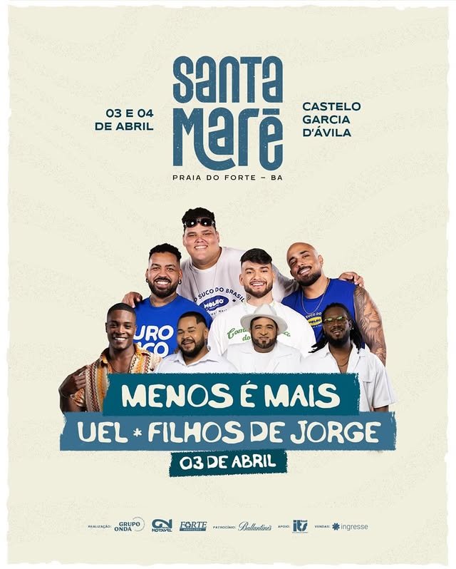 Praia do Forteserá palco de uma nova experiência musical durante a Semana Santa. Nos dias 3 e 4 de abril, o Castelo Garcia D’Ávila recebe a primeira edição do Santa Maré, evento que nasce com a proposta de unir música, amigos e uma atmosfera especial em um cenário especial do litoral baiano.