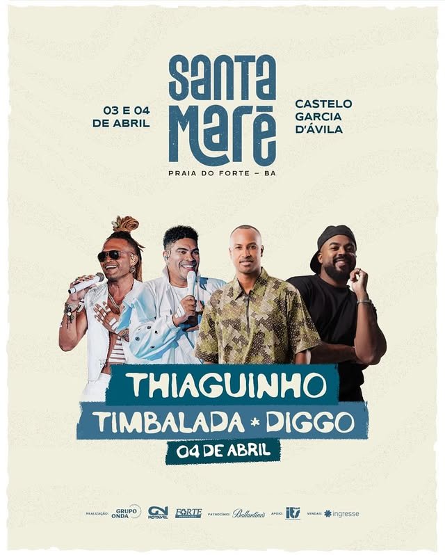 Praia do Forteserá palco de uma nova experiência musical durante a Semana Santa. Nos dias 3 e 4 de abril, o Castelo Garcia D’Ávila recebe a primeira edição do Santa Maré, evento que nasce com a proposta de unir música, amigos e uma atmosfera especial em um cenário especial do litoral baiano.