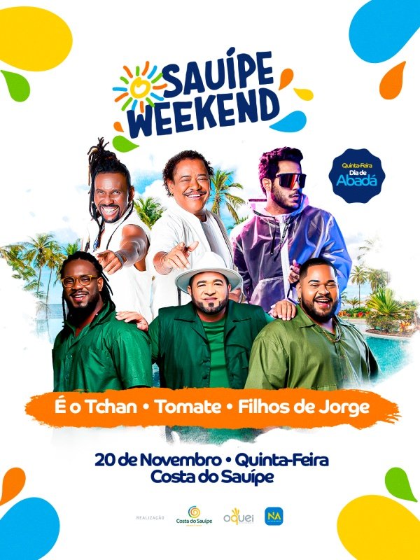 A segunda edição do Sauípe Weekend 2025 será realizada de 20 a 22 de novembro, reunindo alguns dos principais nomes da música baiana em três dias de celebração na Costa do Sauípe, um dos destinos turísticos mais paradisíacos, reconhecidos e desejados do Brasil.