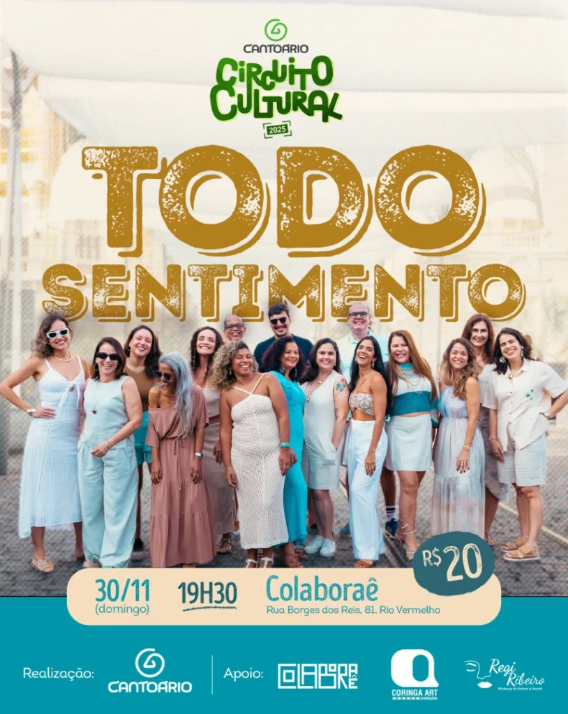 Neste domingo, dia 30, acontece o Circuito Cultural, projeto idealizado pela escola de formação musical Cantoário, sob coordenação e direção da professora de música Mylane Mutti. A programação, que apresenta um repertório diversificado exibido pelos alunos e alunas da escola, contará com duas apresentações: o Entoar, um mini sarau que terá início às 16h30, e o Todo Sentimento, um show livre que começa às 19h30. O evento é aberto ao público e será realizado na Colaboraê, com ingressos à venda no local n o valor de R$20,00.