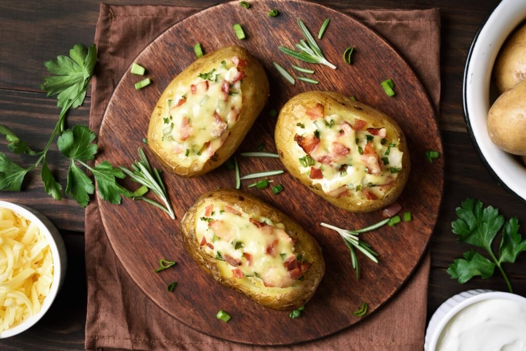 3.Com uma colher, recheie as batatas e finalize com o bacon. Se quiser, adicione mais um pouco de Requeijão NESTLÉ. Volte para gratinar na Air Fryer por mais 5 minutos e sirva!