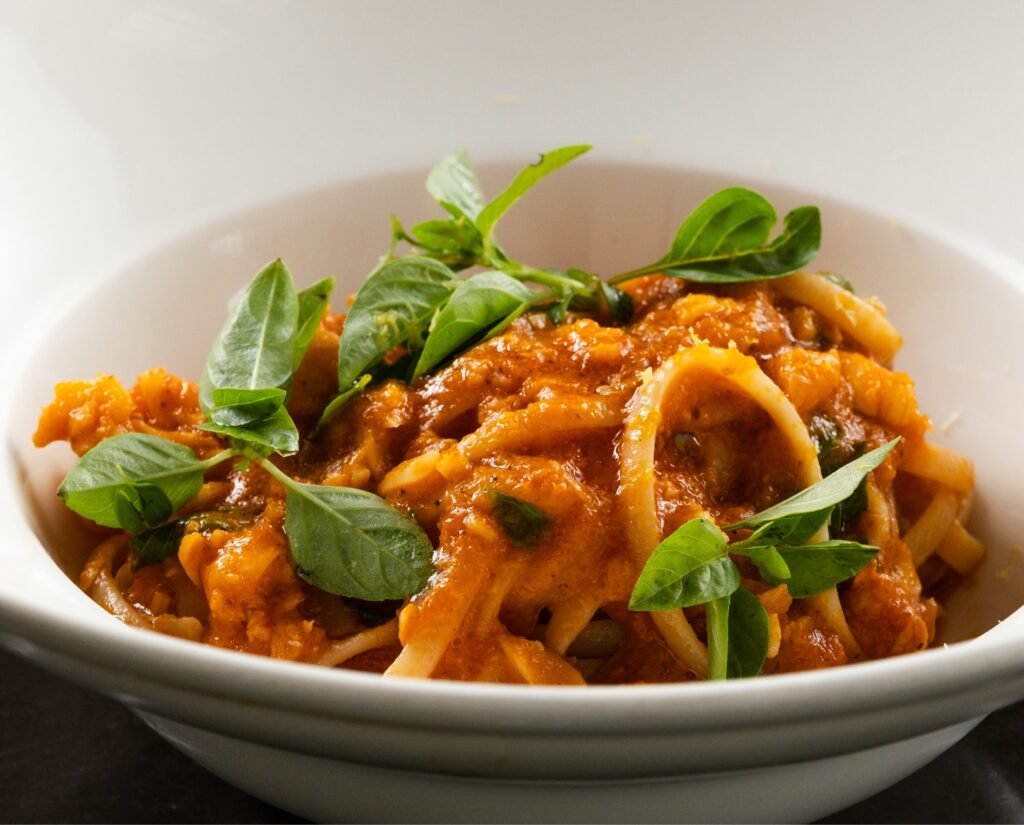 O primeiro surpreende pela delicadeza da composição e pelo caldo rico. Camarões, lula e polvo unem-se a um arroz cremoso, com aioli de páprica e toque de bisque de crustáceos e limão siciliano. O fettuccine também traz o toque do mar; a massa longa recebe um pomodoro caseiro e bisque, com pangrattato de manjericão e lagosta.