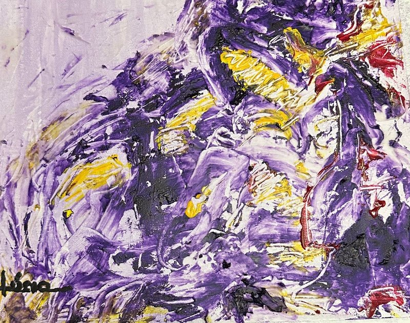 Duas obras chamam atenção por sua passagem na Espanha. Um abstrato frenético, com pinceladas rápidas e energizantes de preto, roxo, violeta, amarelo e vermelho. A mistura das cores, abrem espaços, fendas, marcando a tela como se fossem veias pulsantes.