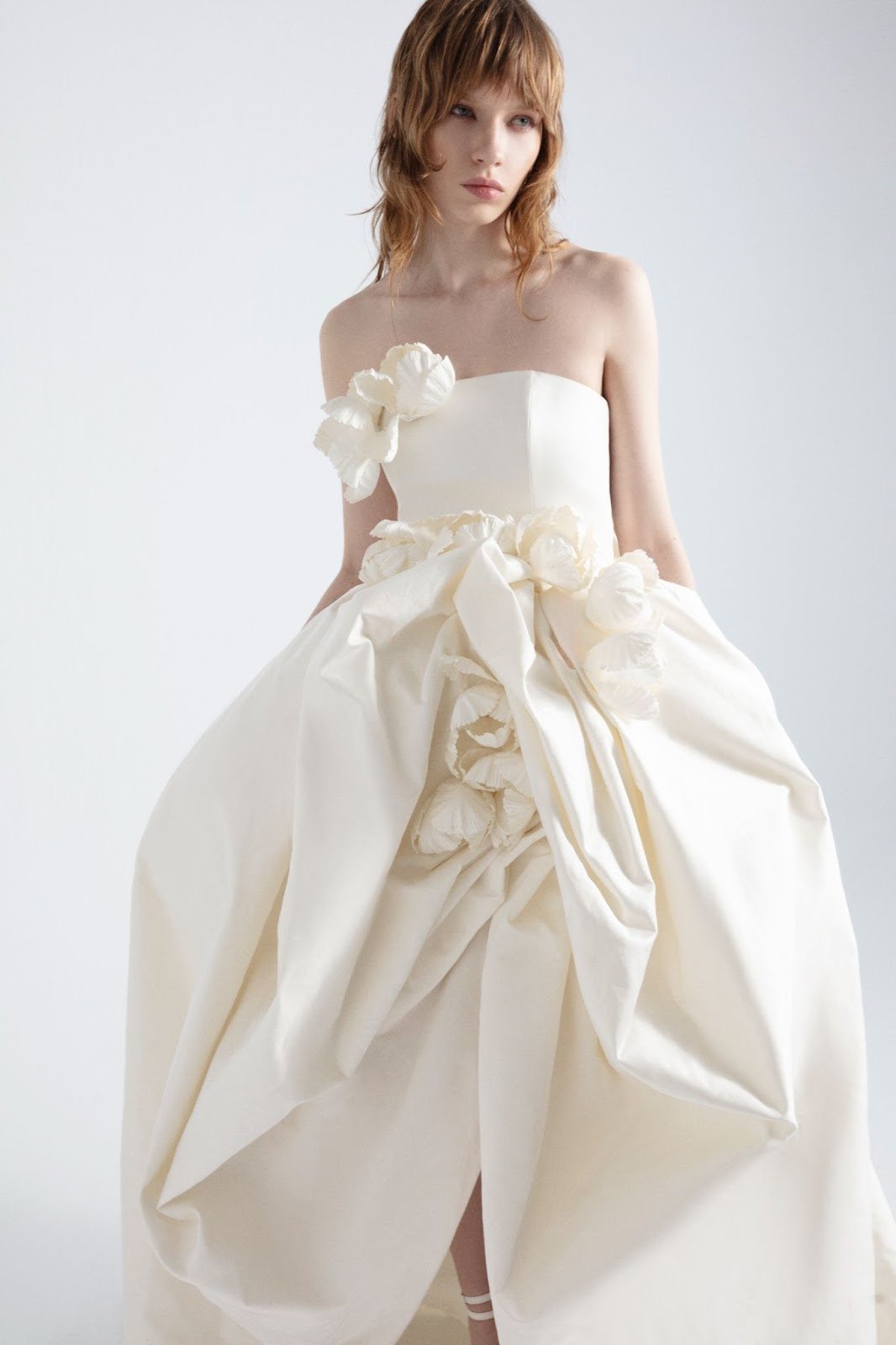 VB: Por fim, o crescimento dos elementos florais nos vestidos de noiva é notável. Aplicações ou estampas florais podem adicionar um toque romântico e único ao vestido, além de trazer um toque de cor para as noivas menos tradicionais.