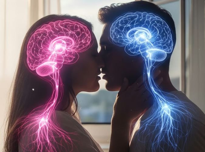 O cérebro muda seu modo operacional: a dopamina sobe e intensifica desejo e motivação; a serotonina tende a cair, favorecendo pensamentos repetitivos e certo grau de obsessividade, fenômeno já observado em pessoas apaixonadas. Ao mesmo tempo, o córtex pré-frontal entra em estado de hiperatenção, avaliando pistas do ambiente, intenções e riscos, enquanto a amígdala calibra medo e aproximação.