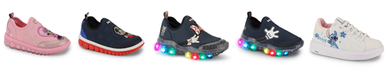 Para o lançamento desta primeira coleção, a Bibi desenvolveu produtos nas suas linhas ícones. Uma delas é a Roller, que conta com diferentes variações, entre elas luzes e sandálias. Esta linha foi lançada há mais de duas décadas pela marca e tem design proprietário, que se mantém atual com as diferentes aplicações a cada coleção. Para o lançamento inédito e exclusivo da coleção Disney, ela vem com aplicação dos personagens e efeito 3D na lycra, além de cores lúdicas para completar qualquer lookinho. No Roller Celebration, além das luzes de LED que piscam quando as crianças caminham, sem necessidade de recarregar, os modelos trazem as mãozinhas do Mickey e da Minnie, com luvinhas e laços, dando um toque charmoso ao calçado. Para as meninas apaixonadas pelo Stitch, a Bibi apresenta um tênis todo em glitter na cor branca e aplicação do personagem nas suas cores originais.