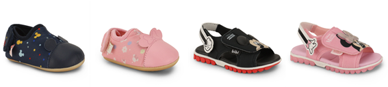 A mesma temática foi desenvolvida para a linha Afeto Joy, voltada para bebês, que traz a delicadeza dos três círculos do Mickey e da Minnie. Entre as opções, há uma versão em azul marinho com detalhes nas cores vermelha, azul e amarela, e outra em rosa claro, com detalhes em branco e roxo, além de aplicação de uma orelhinha com o laço na parte de cima do calçado. Já a linha do Summer Roller traz opções no estilo papete com fechamento em velcro, que são fáceis de calçar e têm o rosto dos camundongos mais famosos do mundo na parte de cima, nas cores preta e rosa claro, que contam com volumetria nas orelhinhas, trazendo conforto à peça. O detalhe fica por conta da parte traseira, que tem o desenho dos braços com luvinhas, característicos dos personagens.