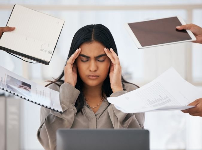 O burnout ativa o eixo do estresse de forma contínua e desequilibrada. O corpo permanece em estado de alerta, com produção constante de cortisol e picos de adrenalina, o que resulta em exaustão física e emocional. Os sintomas se manifestam de maneira ampla: cansaço extremo, alterações no sono, dores de cabeça, compulsão alimentar, queda na imunidade e até distúrbios gastrointestinais.