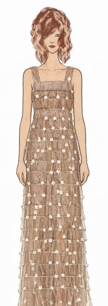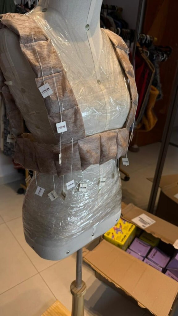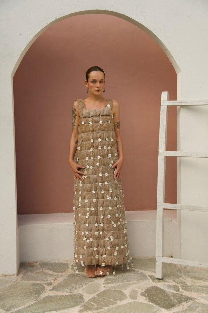 Desenvolvido ao longo de dois meses, o projeto resultou em um vestido exclusivo confeccionado à mão com 300 sachês de café Cafellow, feitos a partir de fibras de milho. Os sachês, produzidos em outubro e que seriam descartados, ganharam um novo propósito ao serem reinventados como matéria-prima para uma peça de moda conceitual, transformando resíduos em expressão criativa.