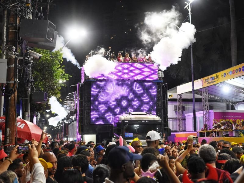 A Timbalada fez uma apresentação marcante na segunda-feira de Carnaval (3), levando a energia do timbau para o Circuito Osmar, no Campo Grande, a bordo de um trio sem cordas apoiado pelo Governo do Estado. Comandada pelos vocalistas Denny Denan e Buja Ferreira, a banda embalou os foliões pipoca ao som de grandes sucessos, lotando o circuito e arrastando uma multidão que seguiu o ritmo pulsante da percussão timbaleira, marca registrada da banda desde sua criação por Carlinhos Brown, em 1991.