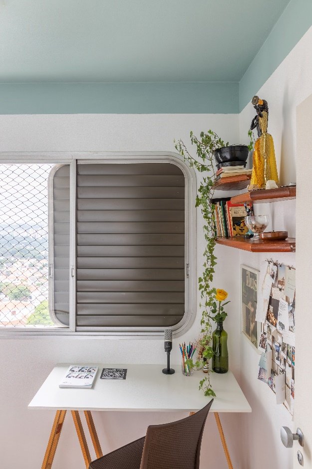 Home office com a Cor Horizonte no teto e nas paredes superiores, trazendo leveza, foco e amplitude ao ambiente | Projeto: Histórias de Casa | Foto: Igor Girotto