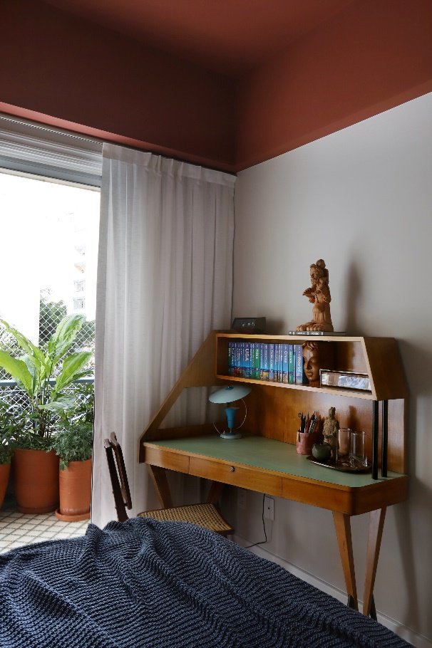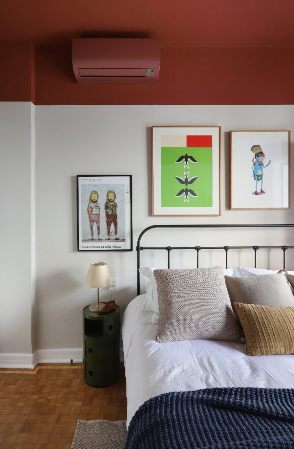 Quarto com teto na Cor Hena, que envolve o ambiente com calor e personalidade | Projeto: Mariana Orsi | Foto: Vanessa Ribeiro