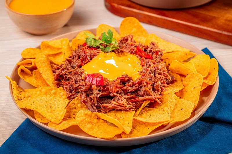 Vai aproveitar o carnaval no conforto de casa, acompanhando os desfiles pela TV? Então, nada melhor do que preparar um delicioso petisco para animar a noite de folia. Confira a receita de Carne Desfiada com Nachos, uma releitura de um clássico mexicano, ideal para petiscar enquanto você torce para a sua escola de samba favorita. Invista no Acém Friboi Reserva para garantir uma carne desfiada suculenta e saborosa e prepare um delicioso creme de cheddar caseiro para completar.