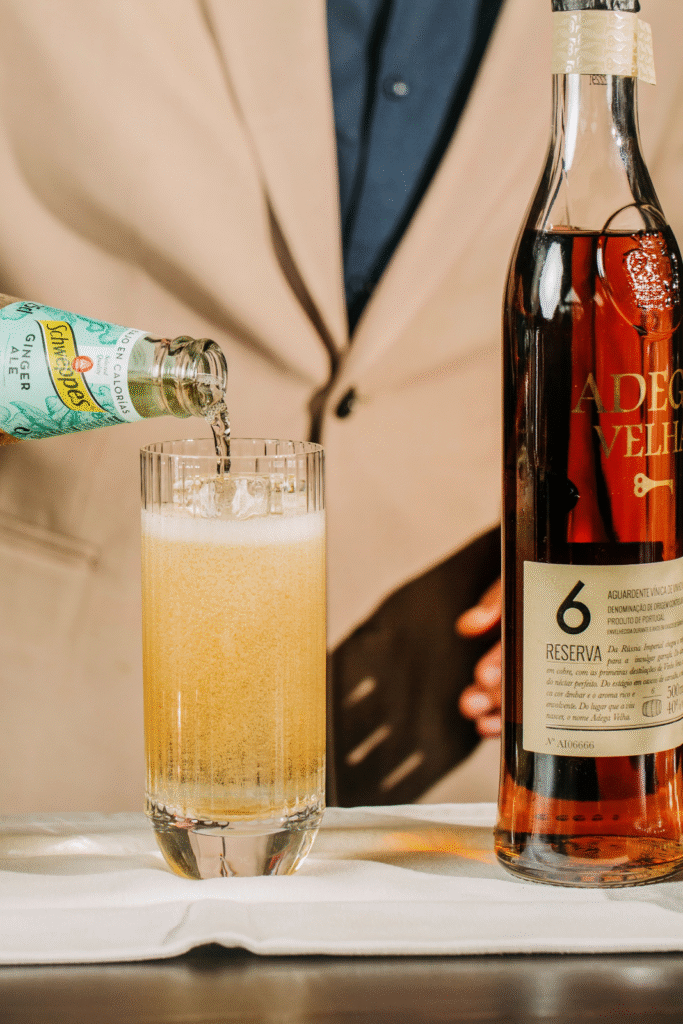 Colocar em um copo 30 ml de Adega Velha 6 anos. Adicionar 3 cubos de gelo e 100 ml de Ginger Ale. Por fim, cortar uma raspa de laranja, torcê-la para liberar os óleos essenciais de laranja, passar pelo copo e decorar com o Twist final.