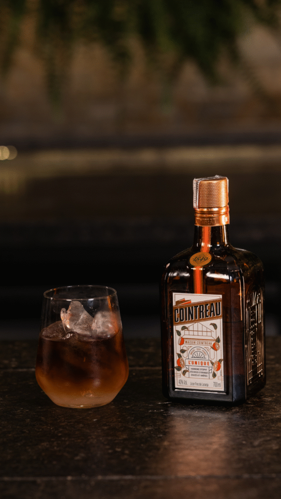 Adicione bastante gelo em um copo, despeje o Cointreau e complete com o café. Um drinque simples e cheio de personalidade.
