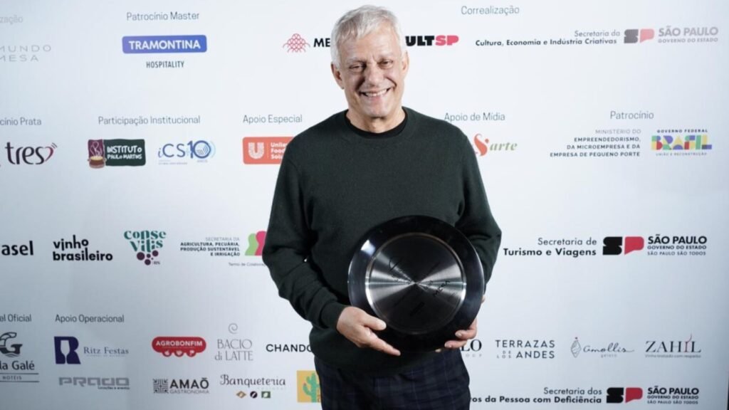 O chef Edinho Engel, dos restaurantes Amado (Bahia) e Manacá (SP), foi homenageado na noite de terça-feira (17), durante a cerimônia de premiação durante a cerimônia de premiação da revista Prazeres da Mesa aos melhores da gastronomia no Brasil. O mineiro que escolheu a Bahia como morada, recebeu o Prêmio Ricardo Castilho como a Personalidade da Gastronomia de 2025. A festa, que apresentou vencedores das 43 categorias, reuniu 800 convidados no Memorial da América Latina, na capital paulista, e reuniu chefs, artesãos, restaurateurs e grandes nomes da área no Brasil.