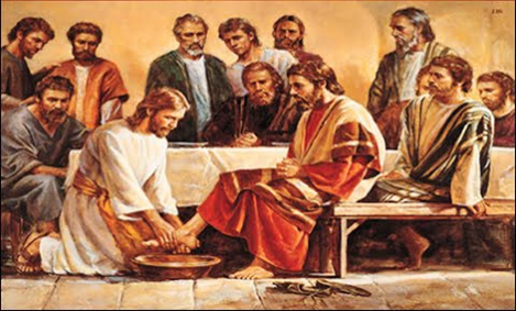 Dentro desse ritual ficou registrado um gesto de humildade e de serviço, quando Jesus, o Mestre, lavou os pés dos discípulos e nos deu o seu novo andamento: “ amai-vos uns aos outros como eu vos amei”. A Igreja na Quinta-feira Santa faz essa memória celebrando a Ceia do Senhor, com solenidade mas guardando a sobriedade. É feita a segunda leitura da paixão e morte de Jesus, o sacerdote lava os pés de 12 pessoas, enquanto os fiéis cantam amai-vos uns aos outros como eu vos tenho amado. Os altares são despojados das suas toalhas, a Eucaristia é retirada do altar e levada, em pequena procissão, para um recinto fora da nave da igreja, onde se fará a vigília.