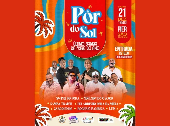O clima de confraternização e solidariedade vai tomar conta da Feira de São Joaquim, no próximo domingo, 21 de dezembro, a partir das 13h, com a realização do Pôr do Sol, o último samba do ano, da Feira, no tradicional Píer de São Joaquim, em Salvador. Mais do que uma grande celebração do samba, o evento também reforça seu compromisso social: toda a renda arrecadada e todos os brinquedos doados serão destinados à campanha Natal do Bem, iniciativa que leva esperança, alegria e dignidade a crianças carentes.
